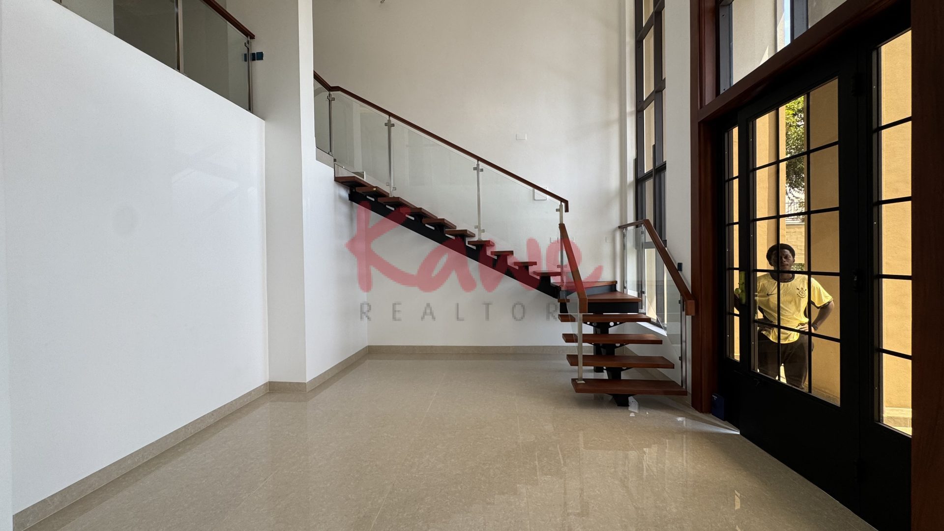 Inside, each unit features a grand double-volume living space with floor-to-ceiling windows, modern chandeliers, and sleek glass balustrades that enhance the sense of openness and sophistication. The architectural design allows light to flow seamlessly across all levels, creating a bright, airy, and welcoming atmosphere throughout the home.