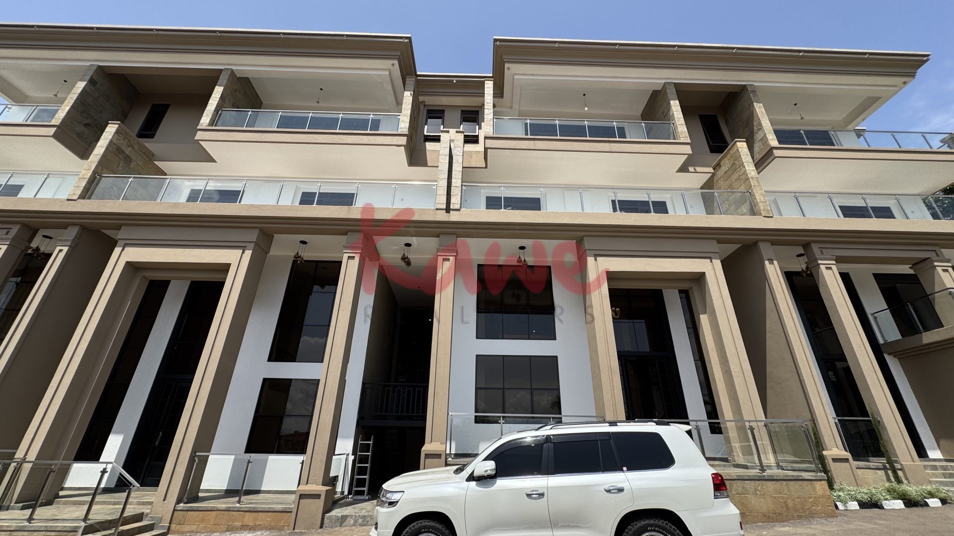 These brand new luxury 4-bedroom townhouses for rent in Lubowa, Kampala showcase striking contemporary architecture with clean lines, stone finishes, and glass balconies that create a bold yet elegant exterior. The homes are thoughtfully elevated to offer privacy, abundant natural light, and beautiful open views of the surrounding neighborhood.